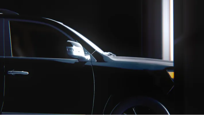 The highlights were devised back at the concept stage. The first meeting of the automobile had to be intriguing. The viewer was not supposed to see everything at once. We decided to accomplish it through the use of a lighting effect. The light dynamically touches the darkened car, as if caressing it with an invisible hand. At this point the viewer feels the shape of the car, glimpsing its silhouette.