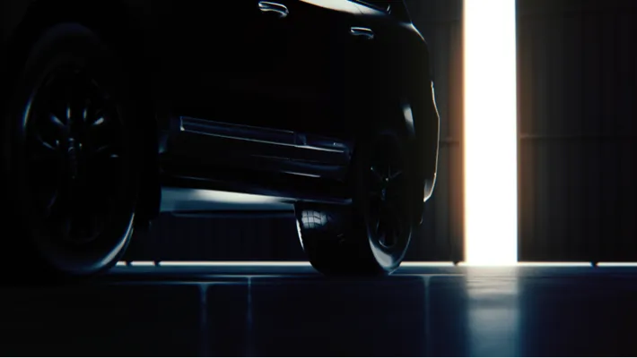 The storyline is quite simple. The car is in a hangar, the gates open, and the car drives out and into a desert, picking up speed. But this unassuming storyline carries a specific visual message. Initially, the car is under cover of darkness, like a mystery and a promise. The opening gates let in sunlight and hope; the drive-off from darkness into light symbolizes a breakthrough, changes, a new beginning, and a new path.