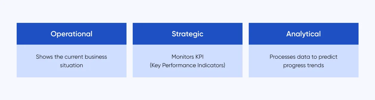 The specific type of tasks will help you identify the kind of dashboard you need:
