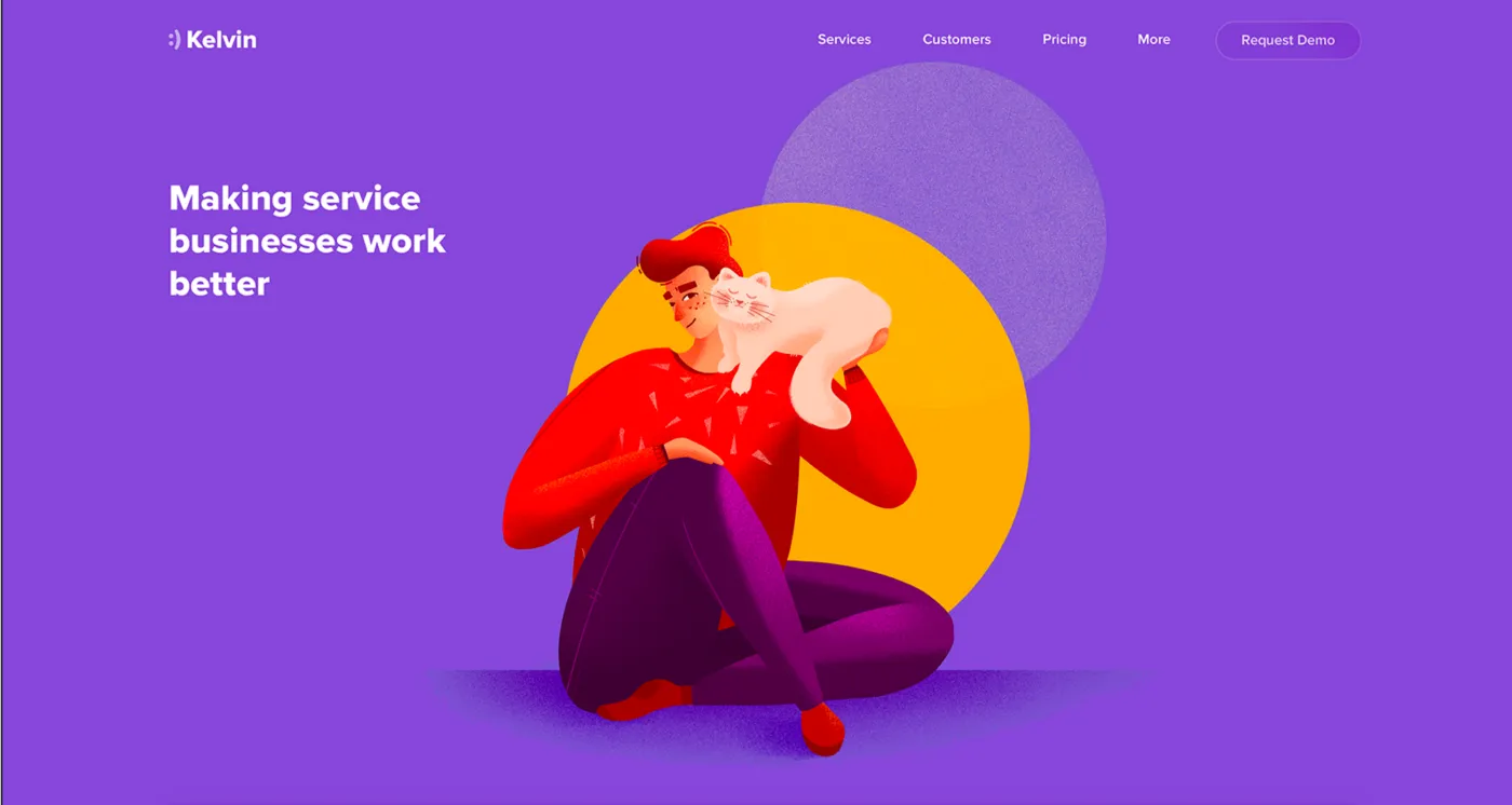 Even a service business can be presented emotionally. This landing page’s design is associated with pleasant and comforting things. As if the services on offer will be as enjoyable as cuddling a fluffy cat. Contrasting accents draw your attention, while purple is enough to make you interested and emotionally responsive. Hypnologists claim that purple induces pliability. The golden circle is associated not only with the sun and warmth but also with money and success. Many finance companies choose the golden color for their logos.