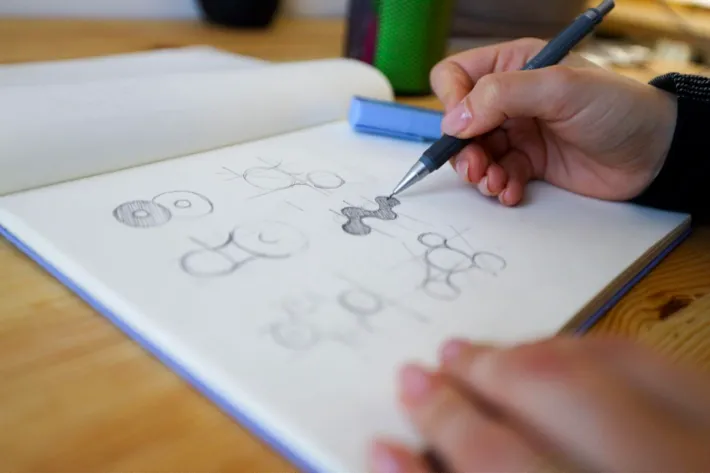 The sketches for the logo are first drawn manually on paper. It’s customary to do between 16 and 20 versions. Photos of the sketches are sent to the client for review. This is followed by a conference-call discussion so that the client can choose the best 3 to 4 versions.