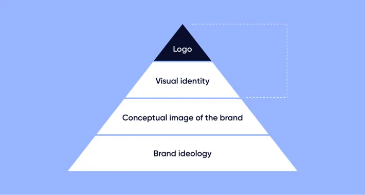 The logo is the top of the pyramid which rests on brand ideology. A house is built from the foundation up, not from the roof down. Doing it the other way around results in a meaningless image instead of a marketing tool. The logo doesn’t begin with design but ends with it.