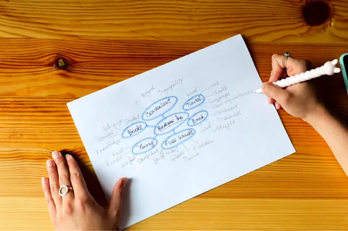 Pause after writing down the first order of associations. Look at each word in turn and write down associations for the associations. You can go on to a third order, but two are usually enough.