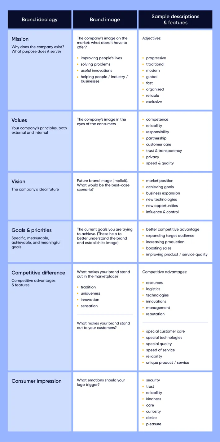 The ultimate goal is to create a verbal description of the company’s image and the message it broadcasts. Only write down the most important and essential things.