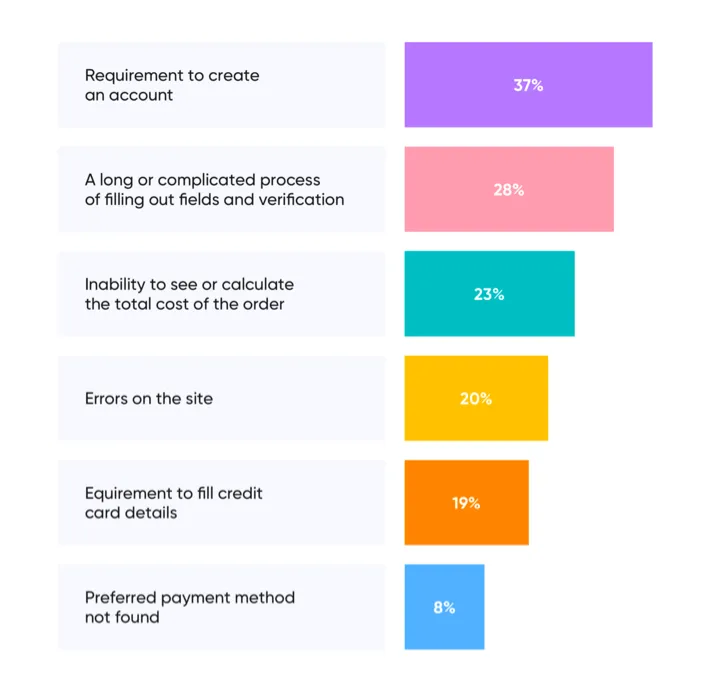It’s helpful to know the reasons why users don’t complete the purchase process. To understand the extent of the problem — almost 70% of users abandon carts! (Statistics of the Baymard Institute). The reasons are different, but we’re interested in those related to interface problems, and there are many of them: