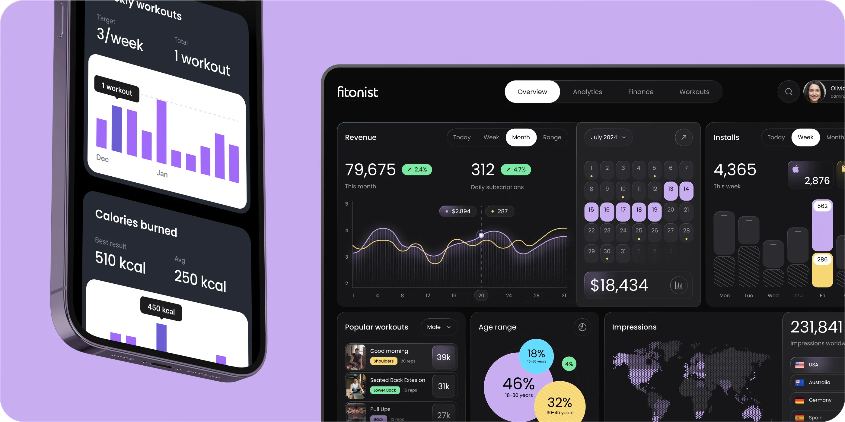 Fitonist - a new fitness application, enriched with AI assistance and custom gamification system.